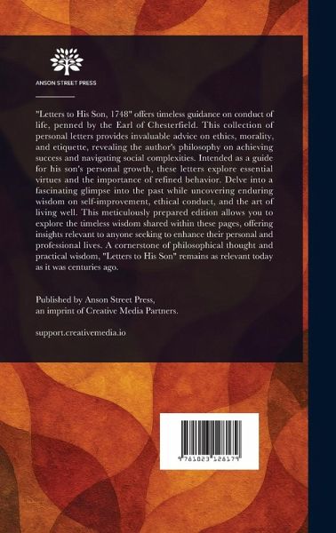 "Letters to His Son, 1748" offers timeless guidance on conduct of life, penned by the Earl of Chesterfield. This collection of personal letters provides invaluable advice on ethics, morality, and etiquette, revealing the author's philosophy on achieving success and navigating social complexities. Intended as a guide for his son's personal growth, these letters explore essential virtues and the importance of refined behavior. Delve into a fascinating glimpse into the past while uncovering enduring wisdom on self-improvement, ethical conduct, and the art of living well. This meticulously prepared edition allows you to explore the timeless wisdom shared within these pages, offering insights relevant to anyone seeking to enhance their personal and professional lives. A cornerstone of philosophical thought and practical wisdom, "Letters to His Son" remains as relevant today as it was centuries ago. This work has been selected by scholars as being culturally important, and is part of the knowledge base of civilization as we know it. This work is in the public domain in the United States of America, and possibly other nations. Within the United States, you may freely copy and distribute this work, as no entity (individual or corporate) has a copyright on the body of the work. Scholars believe, and we concur, that this work is important enough to be preserved, reproduced, and made generally available to the public. We appreciate your support of the preservation process, and thank you for being an important part of keeping this knowledge alive and relevant.