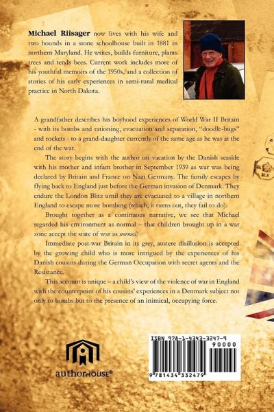 A grandfather describes his boyhood experiences of World War II Britain - with its bombs and rationing, evacuation and separation, "doodle-bugs" and rockets - to a grand-daughter currently of the same age (ten years), as he was at the end of the war in 1945, the midpoint of the decade spanned by this book. The story begins with the author on vacation by the Danish seaside with his mother and infant brother in September 1939 as War was being declared by Britain and France on Nazi Germany. They escape by flying back to England just before the German invasion of Denmark. The family endures the London Blitz until he, his mother and brother are evacuated to a village in northern England to escape more bombing (which, it turns out, they fail to do). Throughout, young Michael has many adventures, which "Grandpa" Michael relates to his granddaughter Kaia in England. Brought together as a continuous narrative, we see that Michael regarded his environment as "normal" - that children brought up in a war zone accept the state of war as normal! Immediate post-war Britain in its grey, austere disillusion is accepted by the growing child who is more intrigued by the experiences of his Danish cousins during the German Occupation with secret agents and the Resistance. Why is Denmark awash in dairy products and ample meats when people in Britain - supposedly a victor of the war - struggle on with niggardly food allowances? This account is unique, not so much in it's description of a child's memories of the violence of war in England (and his acceptance of it), but with the counter-point of his cousins' experiences in a Denmark subject not to bombs but to the presence of an inimical, occupying force.