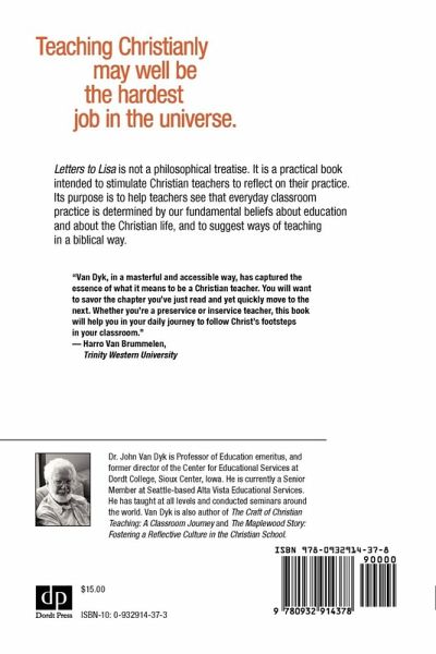 Letters to Lisa is a practical book intended to stimulate Christian teachers to reflect on their practice as teachers. Its purpose is to help teachers see that everyday classroom practice is determined by our fundamental beliefs about education and about the Christian life, and to suggest ways of teaching in the biblical way.