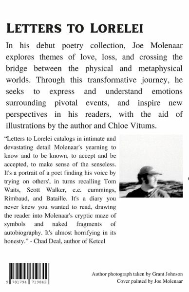 In his debut poetry collection, Joe Molenaar explores themes of love, loss, and crossing the bridge between the physical and metaphysical worlds. Through this transformative journey, he seeks to express and understand emotions surrounding pivotal events, and inspire new perspectives in his readers, with the aid of illustrations by the author and Chloe Vitums.