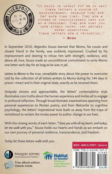 In September 2010, Alejandro learned that Momo, his cousin and closest friend in the family, was suddenly imprisoned. Crushed by his imprisonment and desiring to infuse him with strength, resilience, and, above all, love, Alejandro made an unconditional commitment to write Momo one letter each day for as long as he was in jail. This book is the collection of all letters sent to Momo, exactly as he received them. Letters to Momo is an inspirational reminder of how to confront and overcome physical and psychological prisons, find meaning, and achieve personal growth and liberation-in any situation and from any background.