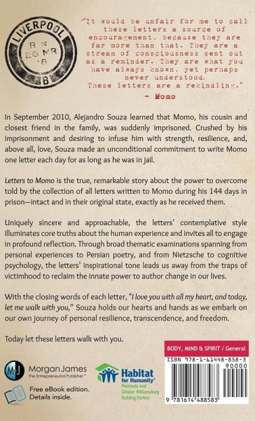 In September 2010, Alejandro learned that Momo, his cousin and closest friend in the family, was suddenly imprisoned. Crushed by his imprisonment and desiring to infuse him with strength, resilience, and, above all, love, Alejandro made an unconditional commitment to write Momo one letter each day for as long as he was in jail. This book is the collection of all letters sent to Momo, exactly as he received them. Letters to Momo is an inspirational reminder of how to confront and overcome physical and psychological prisons, find meaning, and achieve personal growth and liberation-in any situation and from any background.