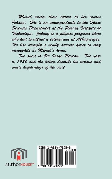 Muriel writes these letters to her cousin Johnny. She is an undergraduate in the Space Sciences Department at the Florida Institute of Technology. John is a physics professor there who had to attend a colloquium at Albuquerque. He has brought a newly arrived guest to stay meanwhile at Muriel's home. The guest is Sir Isaac Newton. The year is 1986 and the letters describe the serious and comic happenings of his visit.