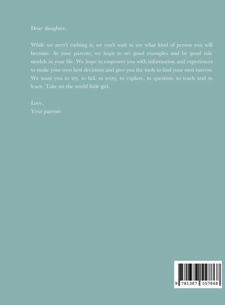 A series of feel good poems that convey life lessons and well wishes. Messages from parent(s) to child. While the title is directed toward our daughter the "letters" contained are designed for all people of all ages.