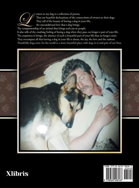 Letters to my dog is a collection of poems. They are heartfelt declarations of the connections of owners to their dogs. They tell of the beauty of having a dog in your life, the unconditional love that a dog brings. The companionship of an animal that brings such joy to people. It also tells of the crushing feeling of losing a dog when they pass, no longer a part of your life. The emptiness it brings, the absence of such a beautiful part of your life that no longer exists They encompass all that having a dog in your life is about, the joy, the love and the sadness. Thankfully dogs exist, for the world is a more beautiful place with dogs in it and part of our lives.