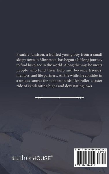 Frankie Jamison, a bullied young boy from a small sleepy town in Minnesota, has begun a lifelong journey to find his place in the world. Along the way, he meets people who lend their help and become friends, mentors, and life partners. All the while, he confides in a unique source for support in his lifes roller-coaster ride of exhilarating highs and devastating lows.