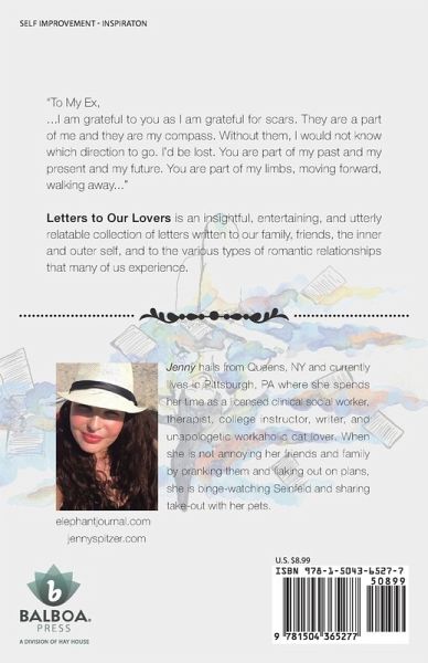 "To My Ex, ...I am grateful to you as I am grateful for scars. They are a part of me and they are my compass. Without them, I would not know which direction to go. I'd be lost. You are part of my past and my present and my future. You are part of my limbs, moving forward, walking away..." Letters to Our Lovers is an insightful, entertaining, and utterly relatable collection of letters written to our families, friends, the inner and outer self, and to the various types of romantic relationships many of us experience.