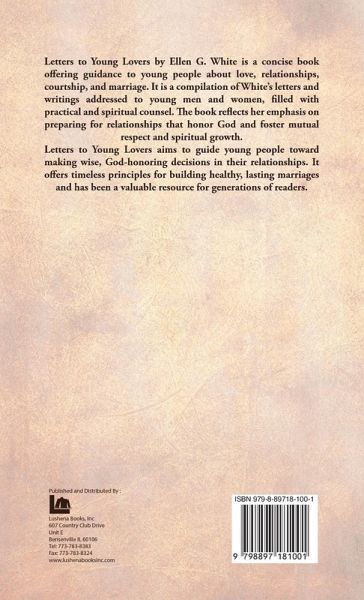 Letters to Young Lovers by Ellen G. White is a concise book offering guidance to young people about love, relationships, courtship, and marriage. It is a compilation of White's letters and writings addressed to young men and women, filled with practical and spiritual counsel. The book reflects her emphasis on preparing for relationships that honor God and foster mutual respect and spiritual growth. Letters to Young Lovers aims to guide young people toward making wise, God-honoring decisions in their relationships. It offers timeless principles for building healthy, lasting marriages and has been a valuable resource for generations of readers.