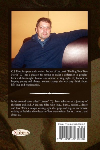 In his second book titled "Letters" C.J. Frost takes us on a journey of the heart and soul. A journey filled with love... hurt... passion... desire and loss. With a unique writing style that grips and tugs at our hearts, making us feel that these letters of love were written for us... to us... and about us.