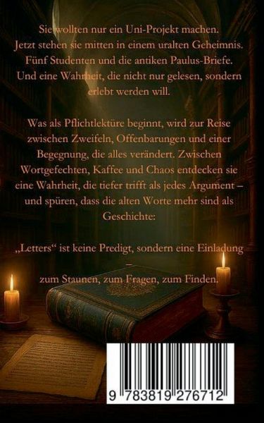 Worum geht es in deinem Buch? Fünf Studenten entdecken bei einem Uni-Projekt uralte Briefe, und geraten dabei in ein geistliches Abenteuer, das nicht nur ihr Denken, sondern ihr Leben verändert. Wo spielt die Geschichte oder um welches Thema geht es? Die Geschichte spielt an einer europäischen Universität, zwischen Hörsaal, Bibeltext und innerem Aufbruch. Thema: Glaube, Zweifel, Identität, Begegnung mit Gottes Wahrheit. Für wen ist dein Buch interessant? Für junge Erwachsene, Sinnsuchende, Christen, Zweifler, Buchliebhaber, und alle, die wissen wollen, ob alte Worte heute noch etwas mit ihrem Leben zu tun haben.