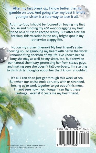 After my last break up, I know better than to gamble on love. And going after my best friend's younger sister is a sure way to lose it all. At thirty-four, I should be focused on buying my first house and funding my 401k-not dragging my best friend on a cruise to escape reality. But after a brutal breakup, this vacation is the only bright spot in my otherwise crappy life. Not on my cruise itinerary? My best friend's sister showing up...or gambling my heart with her in the worst rebound fling decision of my life. I've known her so long she may as well be my sister, too, but between our natural chemistry, protecting her from sleazy guys, and making sure she doesn't fall overboard, I'm starting to think dirty thoughts about her that I know I shouldn't. It's all I can do to just get through this week at sea. But when our cruise ends abruptly with us stranded, forcing us to work together to get out of this mess, I'm not sure how much longer I can fight these feelings... even if it costs me my best friend. Fans of Lucy Score and Pippa Grant will love this steamy brother's-best-friend romantic comedy.