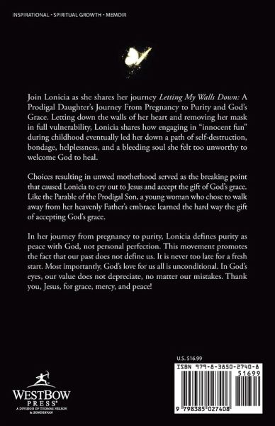 Join Lonicia as she shares her journey Letting My Walls Down: A Prodigal Daughter's Journey From Pregnancy to Purity and God's Grace. Letting down the walls of her heart and removing her mask in full vulnerability, Lonicia shares how engaging in "innocent fun" during childhood eventually led her down a path of self-destruction, bondage, helplessness, and a bleeding soul she felt too unworthy to welcome God to heal. Choices resulting in unwed motherhood served as the breaking point that caused Lonicia to cry out to Jesus and accept the gift of God's grace. Like the Parable of the Prodigal Son, a young woman who chose to walk away from her heavenly Father's embrace learned the hard way the gift of accepting God's grace. In her journey from pregnancy to purity, Lonicia defines purity as peace with God, not personal perfection. This movement promotes the fact that our past does not define us. It is never too late for a fresh start. Most importantly, God's love for us all is unconditional. In God's eyes, our value does not depreciate, no matter our mistakes. Thank you, Jesus, for grace, mercy, and peace!