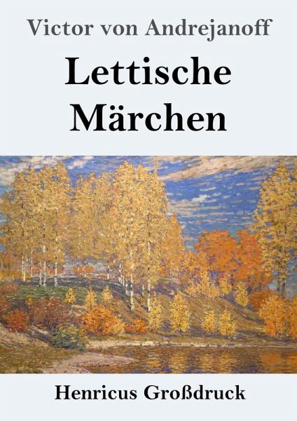 Victor von Andrejanoff: Lettische Märchen Lesefreundlicher Großdruck in 16-pt-Schrift Großformat, 210 x 297 mm Berliner Ausgabe, 2025 Durchgesehener Neusatz bearbeitet und eingerichtet von Theodor Borken Leipzig: Reclam, [1896]. Textgrundlage ist die Ausgabe: Andrejanoff, Victor von: Lettische Märchen. Nacherzählt von -, Leipzig: Reclam, [1896]. Umschlagabbildung: Vilhelms Purv tis: Herbstsonne, 1909 Gesetzt aus der Minion Pro, 16 pt. Henricus - Edition Deutsche Klassik GmbH