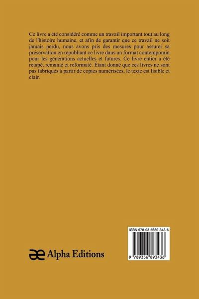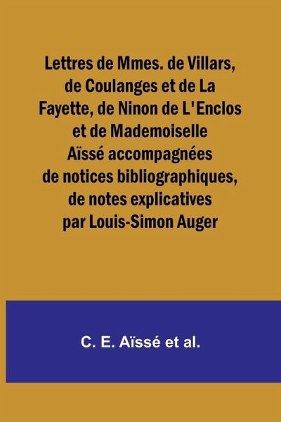 Lettres de Mmes. de Villars, de Coulanges et de La Fayette, de Ninon de L'Enclos et de Mademoiselle Aïssé accompagnées de notices bibliographiques, de notes explicatives par Louis-Simon Auger, a été reconnu comme une ¿uvre majeure tout au long de l'histoire humaine, et nous avons pris des précautions pour assurer sa préservation en republiant ce livre de manière moderne pour les générations présentes et futures. Ce livre a été entièrement retapé, révisé et reformaté. Le texte est lisible et clair car ces livres ne sont pas créés à partir de copies numérisées.
