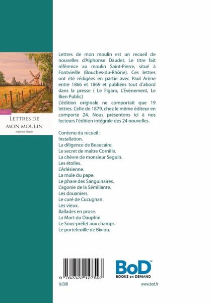 Lettres de mon moulin est un recueil de nouvelles d'Alphonse Daudet. Le titre fait référence au moulin Saint-Pierre, situé à Fontvieille (Bouches-du-Rhône). Ces lettres ont été rédigées en partie avec Paul Arène entre 1866 et 1869 et publiées tout d'abord dans la presse ( Le Figaro, L'Evènement, Le Bien Public)
