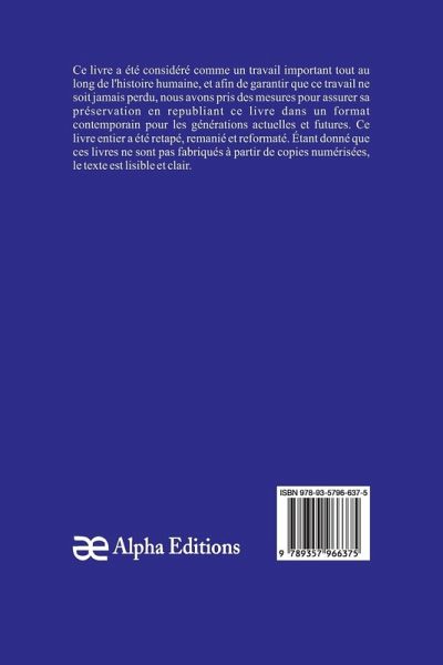 Lettres persanes, tome II, un livre classique, a été considéré comme important tout au long de l'histoire de l'humanité, et pour que cet ouvrage ne soit jamais oublié, chez Alpha Editions, nous avons fait des efforts pour sa préservation en rééditant ce livre dans un format moderne pour les générations présentes et futures. Tout ce livre a été reformaté, retapé et conçu. Ces livres ne sont pas constitués de copies numérisées de leur ¿uvre originale et le texte est donc clair et lisible.