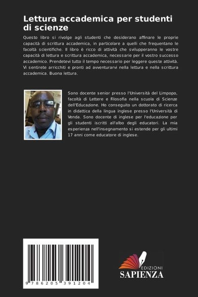 Questo libro si rivolge agli studenti che desiderano affinare le proprie capacità di scrittura accademica, in particolare a quelli che frequentano le facoltà scientifiche. Il libro è ricco di attività che svilupperanno le vostre capacità di lettura e scrittura accademica, necessarie per il vostro successo accademico. Prendetevi tutto il tempo necessario per leggere queste attività. Vi sentirete arricchiti e pronti ad avventurarvi nella lettura e nella scrittura accademica. Buona lettura.