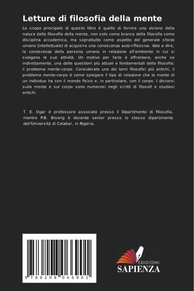 Lo scopo principale di questo libro è quello di fornire una visione della natura della filosofia della mente, non solo come branca della filosofia come disciplina accademica, ma soprattutto come aspetto del generale sforzo umano (intellettuale) di acquisire una conoscenza auto-riflessiva. Vale a dire, la conoscenza della persona umana in relazione all'ambiente in cui si svolgono le sue attività. Un motivo per farlo è affrontare, anche se indirettamente, una delle questioni più attuali e fondamentali della filosofia: il problema mente-corpo. Considerato uno dei temi filosofici più antichi, il problema mente-corpo è come spiegare il tipo di relazione che la mente di un individuo ha con il mondo fisico e, in particolare, con il corpo. I discorsi sulla mente e sul corpo sono numerosi negli scritti di filosofi e studiosi antichi.