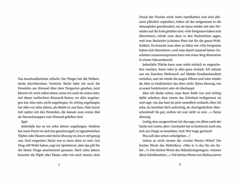 Malina ist noch klein, als ihre Eltern die gleichaltrige Melek adoptieren. Sie hat sich zwar immer eine Schwester gewünscht, aber diese Melek kann sie nicht akzeptieren. Im Gegenteil - als die Perseiden eine Sternschnuppe nach der anderen vom Himmel schleudern, wünscht sie sich, dass Melek einfach verschwindet. Und nun, zehn Jahre später, scheint ihr Wunsch in Erfüllung zu gehen. Ausgerechnet in der Nacht, in der Malina mit Meleks großer Liebe Micha rumknutscht und die Perseiden wieder durch den Himmel fegen, fährt Melek mit dem Fahrrad in eine Autotür und fällt ins Koma. Und Malina glaubt fest, dass sie daran Schuld ist. Und so beschließt sie, in Meleks Heimatstadt Istanbul zu fliegen, um das Schicksal gnädig zu stimmen. Wie, weiß sie selbst nicht. Doch auf ihrer Reise findet Malina heraus, dass die Geschichte ihrer Adoptivschwester auch ihre eigene ist - und zwar mehr, als sie ahnte.