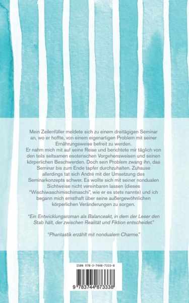 André begibt sich auf eine Reise zu einem dreitägigen Seminar, wo er sich Hilfe für sein eigenartiges Essproblem erhofft.Täglich berichtet er Herrn Leuchtturm Hellblau von den teils seltsamen esoterischen Vorgehensweisen und seinen körperlichen Beschwerden.Sein Problem zwingt ihn jedoch, den aufkommenden Zweifel auszublenden und das Seminar bis zum Ende tapfer durchzuhalten.Zuhause allerdings fällt ihm die Umsetzung des Seminarkonzepts schwer. Es will sich nicht mit seiner nondualen Sichtweise vereinbaren lassen (dieses »Wischiwaschimischimaschi«, wie er es zu nennen pflegt). Hinzu kommen außergewöhnliche körperliche und emotionale Veränderungen, die er nicht einfach so ignorieren kann.»Ein Entwicklungsroman als Balanceakt, in dem der Leser den Stab hält, der zwischen Realität und Fiktion entscheidet.«»Phantastik erzählt mit nondualem Charme.«