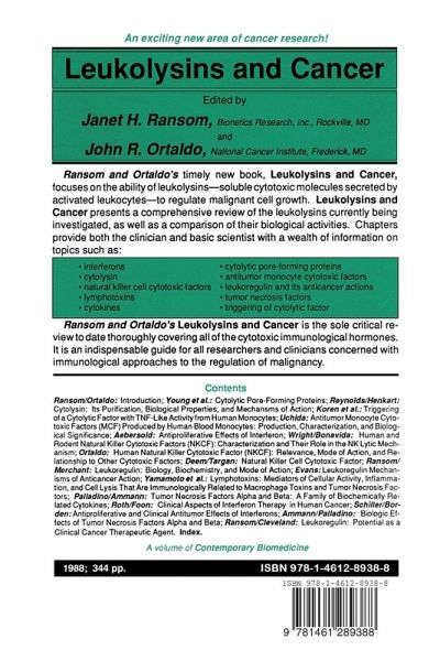 Regulation of malignant cell growth by the immune system has been extensively studied by cancer researchers hoping to develop immuno therapeutic approaches to cancer management. For years these studies revolved around the recognition and destruction of tumors by cytotox. ic immune effector cells. Recently, however, attention has focused on the leukolysins, which are the soluble cytotoxic molecules secreted by activated leukocytes, because of their anticancer activities. The purpose of this book is to give an overview of the ieukolysins, with emphasis on their ability to regulate malignant cell…mehr