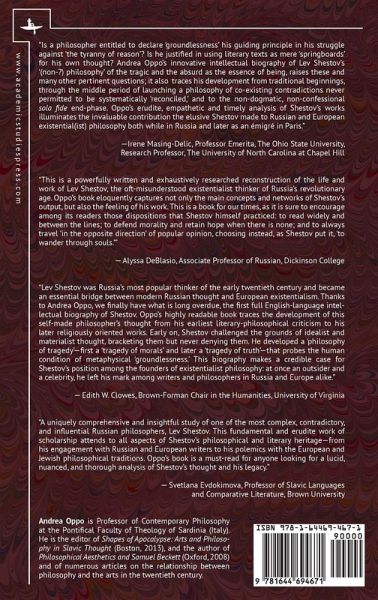 This study spans, in a single monograph, the entire life and work of the Russian philosopher Lev Shestov (1866-1938). It offers essential keys to understanding his thought, while also tracing the historical itinerary and influence of his work both in Russia and in Europe.
