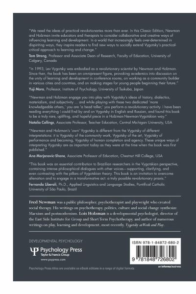 Fred Newman was a public philosopher, psychotherapist and playwright who created social therapy. His writings on psychotherapy, politics, culture and social change synthesize Marxism and postmodernism. Lois Holzman is a developmental psychologist, director of the East Side Institute for Group and Short Term Psychotherapy, and author of numerous writings on play, learning and development, most recently, Vygotsky at Work and Play.