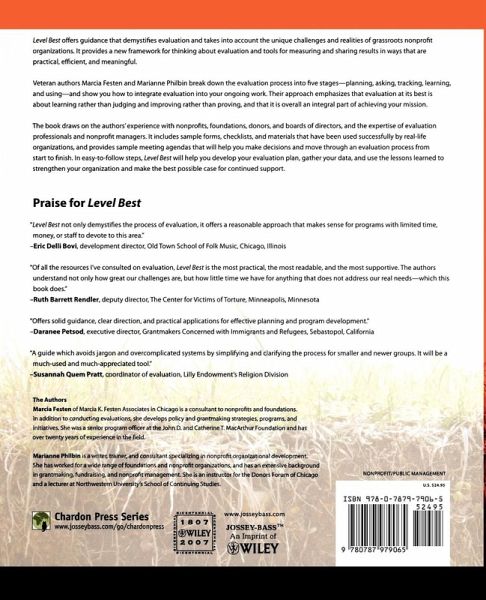 Level Best discusses the unique challenges that face small and grassroots nonprofits dealing with evaluation. It offers practical tools, affordable strategies, and language for talking about organizational results. The book provides information that is simple and direct, logically organized, easily found, and quickly absorbed.Level Best offers guidance that demystifies evaluation and takes into account the unique challenges and realities of grassroots nonprofit organizations. It provides a new framework for thinking about evaluation and tools for measuring and sharing results in ways that are practical, efficient, and meaningful.