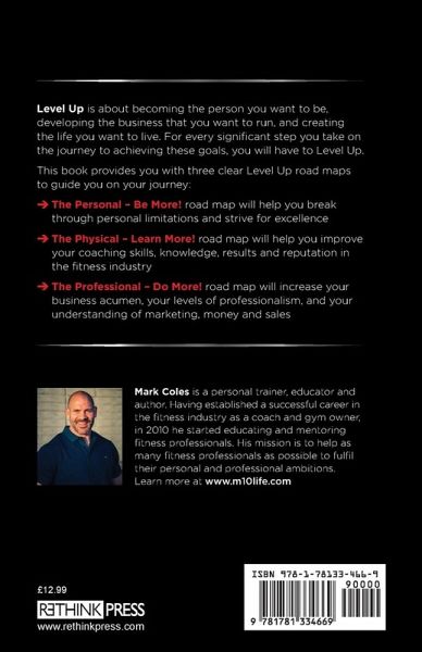 Level Up is about becoming the person you want to be, developing the business that you want to run, and creating the life you want to live. For every significant step you take on the journey to achieving these goals, you will have to Level Up. This book provides you with three clear Level Up road maps to guide you on your journey: The Personal – Be More! road map will help you break through personal limitations and strive for excellence The Physical – Learn More! road map will help you improve your coaching skills, knowledge, results and reputation in the fitness industry The Professional – Do More! road map will increase your business acumen, your levels of professionalism, and your understanding of marketing, money and sales