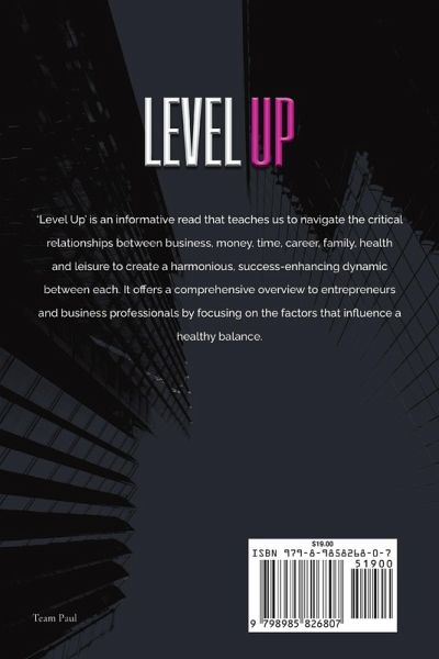 Level-up is a mindset. In order to grow personally and professionally, you have to change the way you think. You should not be satisfied with your current position; your goal is to get to the next level in life and your career. Many of us have heard stories of employees who started in the company's mailroom and rose over time to become the CEO of such a company. ¿They say a person is the average of five of his or her closest friends. If your health, finances, and relationships are not where you want them to be, you need to level up and change your environment and mindset. Think like an entrepreneur, even if you are an employee, and you will enjoy the financial rewards that come along and get to the next level.