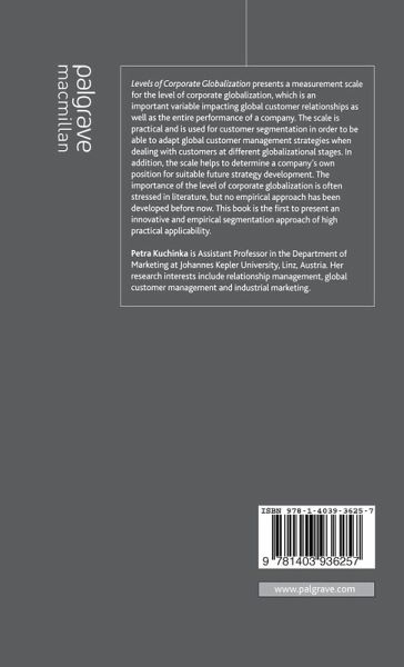 This book presents a new and practical segmentation approach to be used in global customer management in the form of a scale by which to measure the level of corporate globalization. This is a tool that will help companies segment their customers and enable them to adapt customer management strategies when dealing with increasingly global customers. This in turn helps determine the company's own strategic position, thereby enhancing corporate performance.
