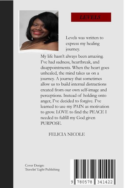 Levels was written to express my healing journey. My life hasn't always been easy. I've had sadness, heartbreak and disappointment. When the heart goes unhealed the mind takes us on a journey. A journey that sometimes allow us to build internal distractions created from our own self-image and perceptions. Instead of holding onto anger, I've decided to forgive. I've decided to use my Pain as motivation to grow. Love to find Peace I needed to fulfill my God given Purpose.