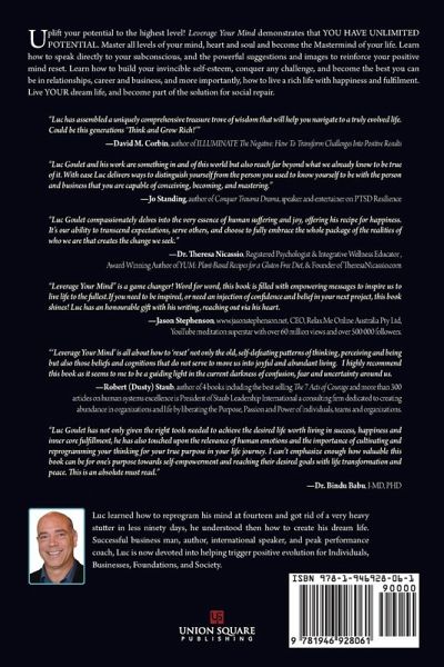 This book explains why happiness is a choice, and success is a mindset. It offers an easy to use complete toolbox of mindset techniques. You will begin a journey of self-empowerment and enjoy immediate benefits and limitless results. We begin by debunking the myths about our limits. You will get a true update on where science stands today in the knowledge of the mind. The author demonstrates how his "4 Hidden Aces" (visualization, self-hypnosis, meditation and magnetism), and more, can align your conscious, subconscious, heart, and soul. This work presents easy to use methods that anyone can learn and apply. You will be able to combine powerful mind reprogramming methods to reach into your inner strength, and find your full potential. You will learn to build your "Invincible Self-Esteem" in a matter of days. You will also learn peak performance mindset techniques enabling you be your best at all times and have greater focus and be in the zone in any situation. You will learn how to overcome any challenge, and turn all the negative situations into positive outcomes. Leverage Your Mind proposes a unique and simple "3R" approach for success, you will Recognize your true potential, Reset your mindset at will, and Reinvent your future through action, for concrete results. Most importantly, it proposes actionable steps that will mobilize you for positive change, from day one. This book will enable you to truly reach your dreams, guide you towards your life's purpose and become the best you can be. You will understand that you are an important part of the positive social evolution, and that your contribution matters.