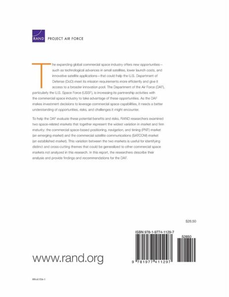 RAND researchers evaluated two commercial space markets to understand opportunities, challenges, and risks that the Department of the Air Force could encounter when making decisions to invest in commercial space capabilities.