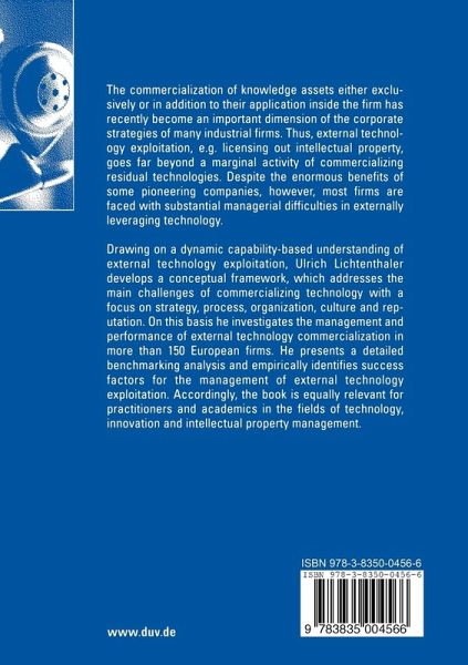 The commercialization of knowledge assets either exclusively or in addition to their application inside the firm has recently become an important dimension of the corporate strategies of many industrial firms. Thus, external technology exploitation, e.g. licensing out intellectual property, goes far beyond a marginal activity of commercializing residual technologies. Despite the enormous benefits of some pioneering companies, however, most firms are faced with substantial managerial difficulties in externally leveraging technology.