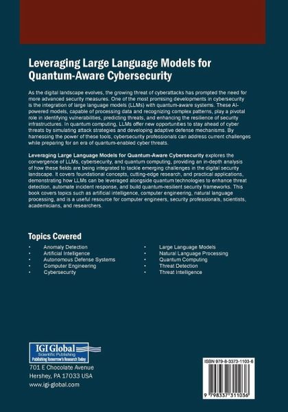 As the digital landscape evolves, the growing threat of cyberattacks has prompted the need for more advanced security measures. One of the most promising developments in cybersecurity is the integration of large language models (LLMs) with quantum-aware systems. These AI-powered models, capable of processing data and recognizing complex patterns, play a pivotal role in identifying vulnerabilities, predicting threats, and enhancing the resilience of security infrastructures. In quantum computing, LLMs offer new opportunities to stay ahead of cyber threats by simulating attack strategies and developing adaptive defense mechanisms. By harnessing the power of these tools, cybersecurity professionals can address current challenges while preparing for an era of quantum-enabled cyber threats. Leveraging Large Language Models for Quantum-Aware Cybersecurity explores the convergence of LLMs, cybersecurity, and quantum computing, providing an in-depth analysis of how these fields are being integrated to tackle emerging challenges in the digital security landscape. It covers foundational concepts, cutting-edge research, and practical applications, demonstrating how LLMs can be leveraged alongside quantum technologies to enhance threat detection, automate incident response, and build quantum-resilient security frameworks. This book covers topics such as artificial intelligence, computer engineering, natural language processing, and is a useful resource for computer engineers, security professionals, scientists, academicians, and researchers.