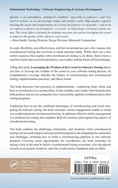 Its scale, flexibility, cost effectiveness, and fast turnaround are just a few reasons why crowdsourced testing has received so much attention lately. While there are a few online resources that explain what crowdsourced testing is all about, there's been a need for a book that covers best practices, case studies, and the future of this technique. Filling this need, Leveraging the Wisdom of the Crowd in Software Testing shows you how to leverage the wisdom of the crowd in your software testing process. Its comprehensive coverage includes the history of crowdsourcing and crowdsourced testing,…mehr