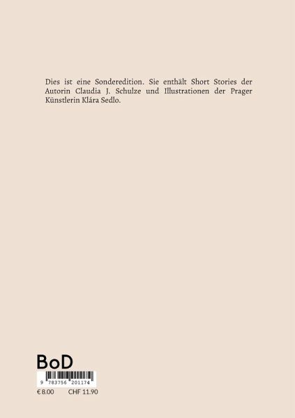 Dies ist eine Sonderedition. Sie enthält Short Stories der Autorin Claudia J. Schulze, Konstanz, Offenburg & Strasbourg, sowie Illustrationen der Prager Künstlerin Klára Sedlo.Ähnlichkeiten mit noch lebenden, bereits verstorbenen, oder zum Zeitpunkt der Herausgabe dieser Geschichten noch nicht geborenen Personen sind (wie in allen guten Geschichten) rein zufällig.