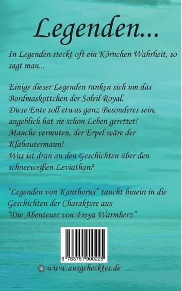 In Legenden steckt oft ein Körnchen Wahrheit, so sagt man...Einige dieser Legenden ranken sich um das Bordmaskottchen der Soleil Royal.Diese Ente soll etwas ganz Besonderes sein, angeblich hat sie schon Leben gerettet!Manche vermuten, der Erpel wäre der Klabautermann!Was ist dran an den Geschichten über den schneeweißen Leviathan?Legenden von Kanthorus- taucht hinein in die Geschichten der Charaktere aus "Die Abenteuer von Freya Warmherz"
