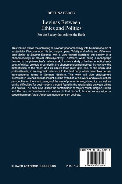 `Bergo's work is not for novices. However, those familiar with Levinas's thought are likely to find it an astonishingly erudite, even indispensable, reading of his major works as well as a subtle, cogently argued interpretation of the ambiguities, rifts and paradoxes inherent in the relation of ethics to polity.' The Journal of Speculative Philosophy, 15:1 (2001)