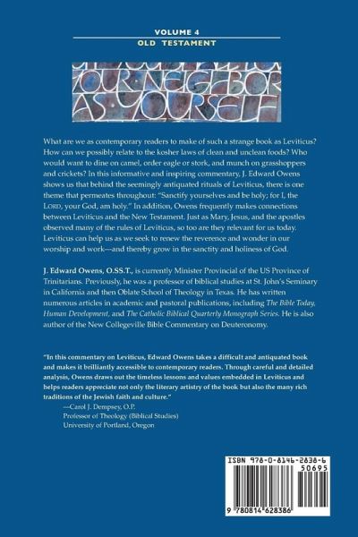 What are we as contemporary readers to make of such a strange book as Leviticus? How can we possibly relate to the kosher laws of clean and unclean foods? Who would want to dine on camel, order eagle or stork, and munch on grasshoppers and crickets? In this informative and inspiring commentary, J. Edward Owens shows us that behind the seemingly antiquated rituals of Leviticus, there is one theme that permeates throughout: "Sanctify yourselves and be holy; for I, the LORD, your God, am holy." In addition, Owens frequently makes connections between Leviticus and the New Testament. Just as Mary, Jesus, and the apostles observed many of the rules of Leviticus, so too are they relevant for us today. Leviticus can help us as we seek to renew the reverence and wonder in our worship and work -- and thereby grow in the sanctity and holiness of God.