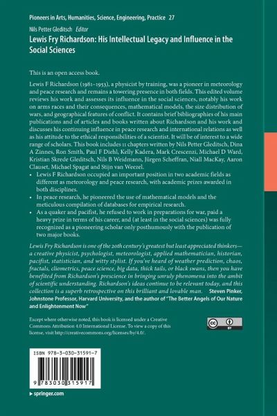 This is an open access book. Lewis F Richardson (1981-1953), a physicist by training, was a pioneer in meteorology and peace research and remains a towering presence in both fields. This edited volume reviews his work and assesses its influence in the social sciences, notably his work on arms races and their consequences, mathematical models, the size distribution of wars, and geographical features of conflict. It contains brief bibliographies of his main publications and of articles and books written about Richardson and his work and discusses his continuing influence in peace research and international relations as well as his attitude to the ethical responsibilities of a scientist. It will be of interest to a wide range of scholars. This book includes 11 chapters written by Nils Petter Gleditsch, Dina A Zinnes, Ron Smith, Paul F Diehl, Kelly Kadera, Mark Crescenzi, Michael D Ward, Kristian Skrede Gleditsch, Nils B Weidmann, Jürgen Scheffran, Niall MacKay, Aaron Clauset, Michael Spagat and Stijn van Weezel.