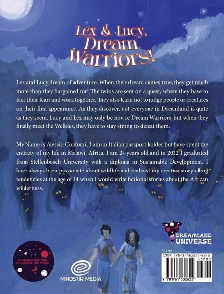 Amazon Best Seller! Lex and Lucy dream of adventure. When their dream comes true, they get much more than they bargained for! The twins are sent on a quest, where they have to face their fears and work together. They also learn not to judge people or creatures on their first appearance. As they discover, not everyone in Dreamland is quite as they seem. Lucy and Lex may only be novice Dream Warriors, but when they finally meet the Welkies, they have to stay strong to defeat them. My Name is Alessio Conforzi, I am an Italian passport holder but have spent the entirety of my life in Malawi, Africa. I am 24 years old and in 2022 I graduated from Stellenbosch University with a diploma in Sustainable Development. I have always been passionate about wildlife and realized my creative storytelling tendencies at the age of 14 when I would write fictional stories about the African wilderness.