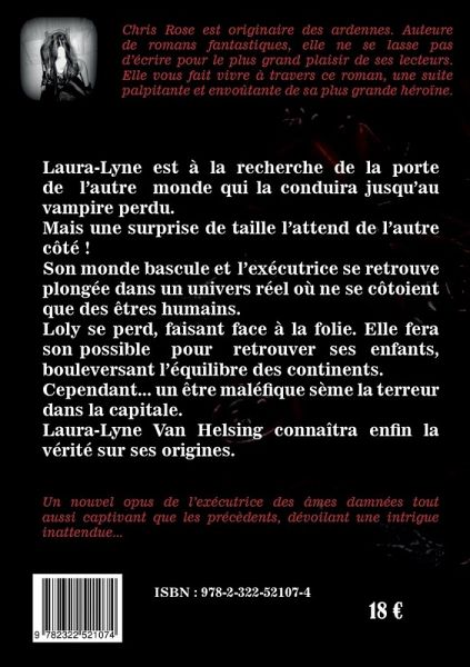 Laura-Lyne est à la recherche de la porte de l'autre monde qui la conduira jusqu'au vampire perdu. Mais une surprise de taille l'attend de l'autre côté!Son monde bascule et l'exécutrice se retrouve plongée dans un univers réel où ne se côtoient que des êtres humains. Loly se perd, faisant face à la folie. Elle fera son possible pour repartir dans son monde fantastique et retrouver ses enfants, bouleversant la nature, remettant les choses à leur place.Cependant... un être maléfique sème la terreur dans la capitale.Laura-Lyne Van Helsing connaîtra enfin la vérité sur ses origines...