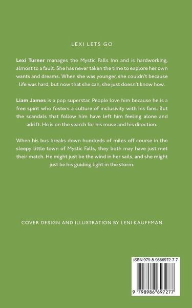 Lexi Turner manages the Mystic Falls Inn and is hardworking, almost to a fault. She has never taken the time to explore her own wants and dreams. When she was younger, she couldn't because life was hard, but now that she can, she just doesn't know how. Liam James is a pop superstar. People love him because he is a free spirit who fosters a culture of inclusivity with his fans. But the scandals that follow him have left him feeling alone and adrift. He is on the search for his muse and his direction. When his bus breaks down hundreds of miles off course in the sleepy little town of Mystic Falls, they both may have just met their match. He might just be the wind in her sails, and she might just be his guiding light in the storm.