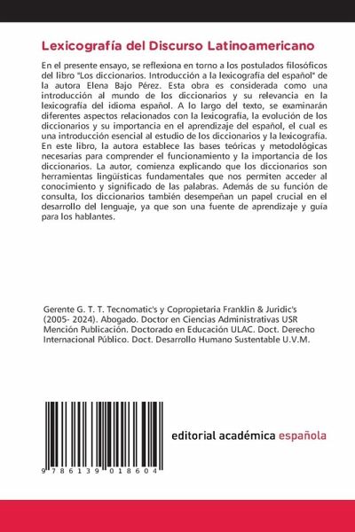 En el presente ensayo, se reflexiona en torno a los postulados filosóficos del libro "Los diccionarios. Introducción a la lexicografía del español" de la autora Elena Bajo Pérez. Esta obra es considerada como una introducción al mundo de los diccionarios y su relevancia en la lexicografía del idioma español. A lo largo del texto, se examinarán diferentes aspectos relacionados con la lexicografía, la evolución de los diccionarios y su importancia en el aprendizaje del español, el cual es una introducción esencial al estudio de los diccionarios y la lexicografía. En este libro, la autora establece las bases teóricas y metodológicas necesarias para comprender el funcionamiento y la importancia de los diccionarios. La autor, comienza explicando que los diccionarios son herramientas lingüísticas fundamentales que nos permiten acceder al conocimiento y significado de las palabras. Además de su función de consulta, los diccionarios también desempeñan un papel crucial en el desarrollo del lenguaje, ya que son una fuente de aprendizaje y guía para los hablantes.