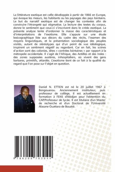 La littérature exotique est celle développée à partir de 1866 en Europe, qui évoque les moeurs, les habitants ou les paysages des pays lointains. Le but du narratif exotique est de changer les contextes afin de construire l'étrangeté qui stigmatise. La lecture des textes du corpus, donne le sentiment que ceux-ci s'inscrivent dans le crédo exotique. La présente analyse tente d'ordonner la masse des caractéristiques et d'interprétations de l'exotisme. Elle s'appuie sur une étude lexicographique liée aux décors du cadre des récits, l'examen des moyens linguistiques, et la présentation sociologique des peuples visités, autant de stéréotypes qui d'un point de vue idéologique, inspirent un sentiment négatif au regardant. Car en fait, les scènes d'action sont des colonies, dites « contrées lointaines » par rapport à la métropole occidentale. Il s'agit de l'Afrique, des Antilles et des Indes : des zones supposées austères, inhospitaliers, où vivent des gens barbares, primitifs, attardés. L'exotisme tient de ce fait à la qualité du regard que l'on pose sur l'objet en question.