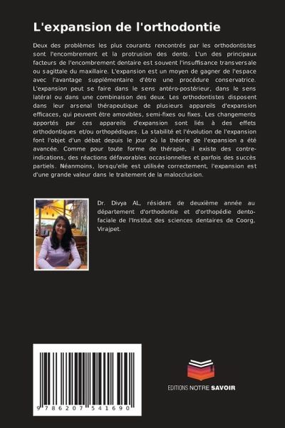 Deux des problèmes les plus courants rencontrés par les orthodontistes sont l'encombrement et la protrusion des dents. L'un des principaux facteurs de l'encombrement dentaire est souvent l'insuffisance transversale ou sagittale du maxillaire. L'expansion est un moyen de gagner de l'espace avec l'avantage supplémentaire d'être une procédure conservatrice. L'expansion peut se faire dans le sens antéro-postérieur, dans le sens latéral ou dans une combinaison des deux. Les orthodontistes disposent dans leur arsenal thérapeutique de plusieurs appareils d'expansion efficaces, qui peuvent être amovibles, semi-fixes ou fixes. Les changements apportés par ces appareils d'expansion sont liés à des effets orthodontiques et/ou orthopédiques. La stabilité et l'évolution de l'expansion font l'objet d'un débat depuis le jour où la théorie de l'expansion a été avancée. Comme pour toute forme de thérapie, il existe des contre-indications, des réactions défavorables occasionnelles et parfois des succès partiels. Néanmoins, lorsqu'elle est utilisée correctement, l'expansion est d'une grande valeur dans le traitement de la malocclusion.