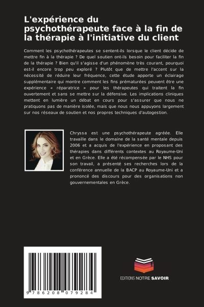 Comment les psychothérapeutes se sentent-ils lorsque le client décide de mettre fin à la thérapie ? De quel soutien ont-ils besoin pour faciliter la fin de la thérapie ? Bien qu'il s'agisse d'un phénomène très courant, pourquoi est-il encore trop peu exploré ? Plutôt que de mettre l'accent sur la nécessité de réduire leur fréquence, cette étude apporte un éclairage supplémentaire qui montre comment les fins prématurées peuvent être une expérience « réparatrice » pour les thérapeutes qui traitent la fin ouvertement et sans se mettre sur la défensive. Les implications cliniques mettent en lumière un débat en cours pour s'assurer que nous ne pratiquons pas de manière isolée, mais que nous nous appuyons largement sur nos réseaux de soutien et nos propres techniques d'autogestion.