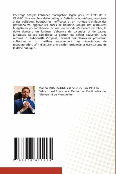 L'ouvrage analyse l'absence d'obligation légale pour les États de la CEMAC d'honorer leur dette publique. Cette lacune juridique, combinée à des politiques budgétaires inefficaces et un manque d'éthique des gestionnaires, aggrave les crises de liquidité. Malgré des ressources budgétaires potentiellement accrues en période d'excédent pétrolier, la dette demeure un fardeau. L'absence de garanties et de cadres juridiques solides complique la gestion du défaut souverain. Une réforme institutionnelle s'impose, incluant des clauses de protection collective et un meilleur encadrement des négociations de restructuration, afin d'assurer une gestion ordonnée et transparente de la dette publique.